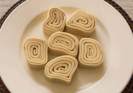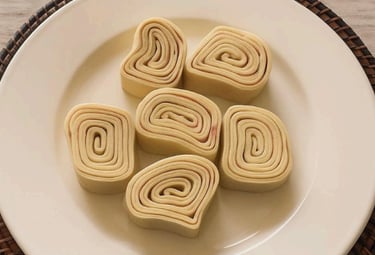 Rondelli de presunto e mussarela com molho ao sugo ou branco.